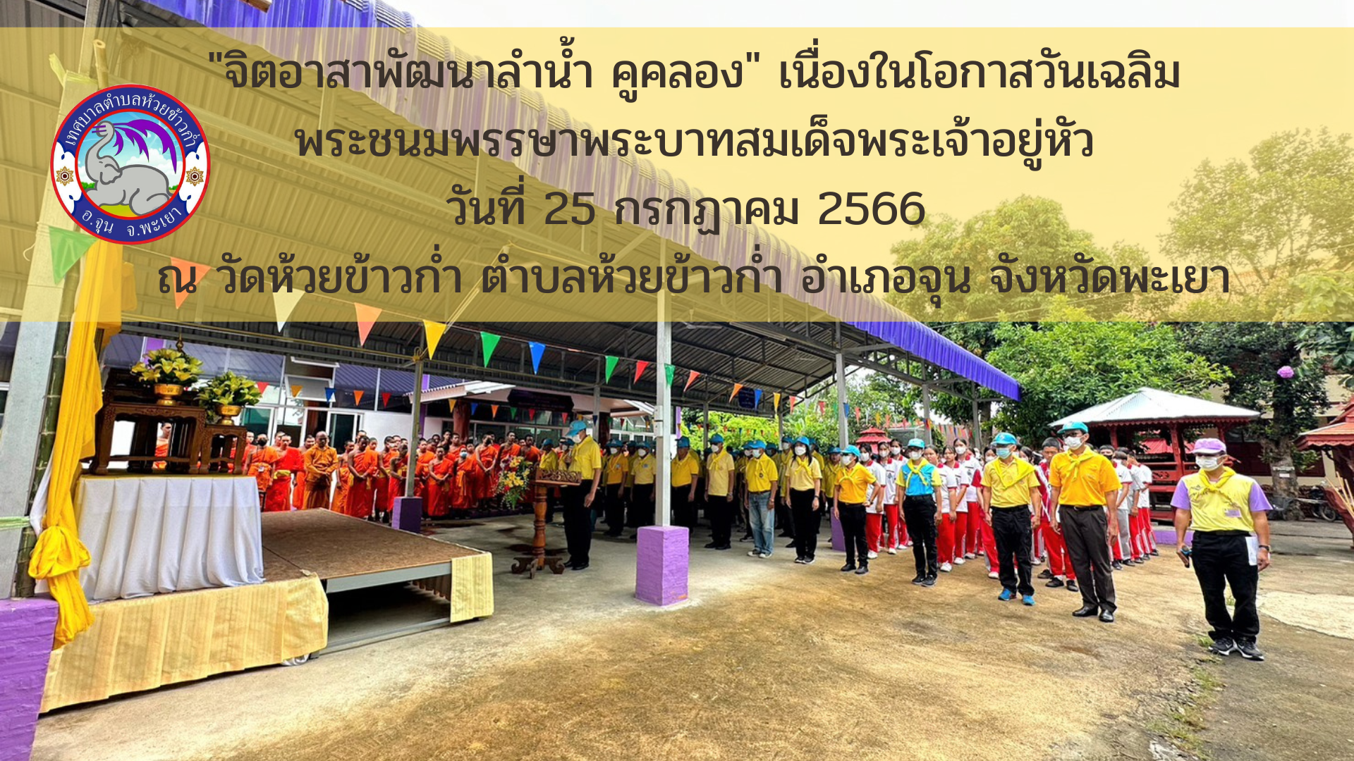 วันที่ 25 กรกฏาคม 2566 เวลา 09.30 น. นายกมล สุวรรณมาศ นายกเทศมนตรีตำบลห้วยข้าวก่ำ พร้อมด้วยคณะผู้บริหาร สมาชิกสภาเทศบาล และพนักงาน เจ้าหน้าที่ เทศบาลตำบลห้วยข้าวก่ำ เข้าร่วมกิจกรรมจิตอาสาพัฒนาในโอกาสสำคัญของชาติไทย กิจกรรม “จิตอาสาพัฒนาลำน้ำ คูคลอง” ณ วัดห้วยข้าวก่ำ อำเภอจุน จังหวัดพะเยา