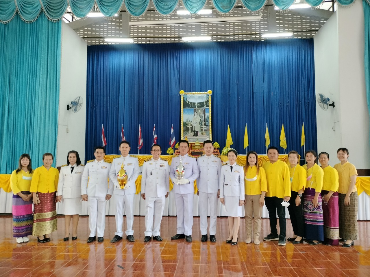 ช่วงเย็น เวลา 17.30 น. พิธีถวายเครื่องราชสักการะและถวายพานพุ่ม (พุ่มเงิน-พุ่มทอง) ณ หอประชุม 50 ปี ที่ว่าการอำเภอจุน จังหวัดพะเยา
