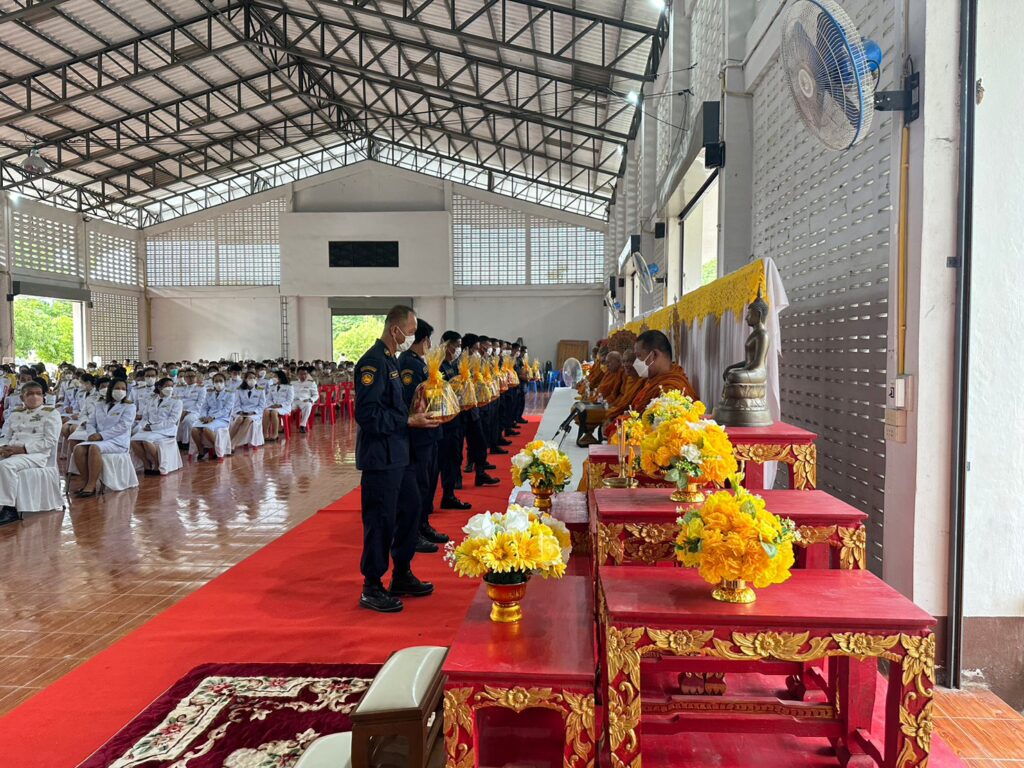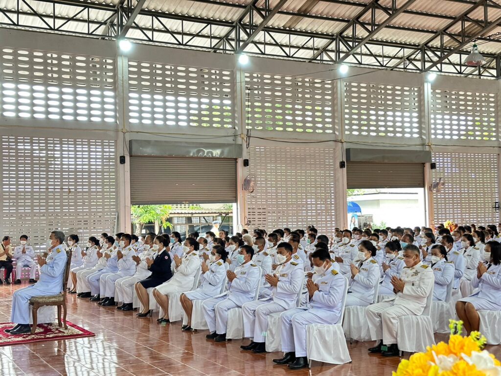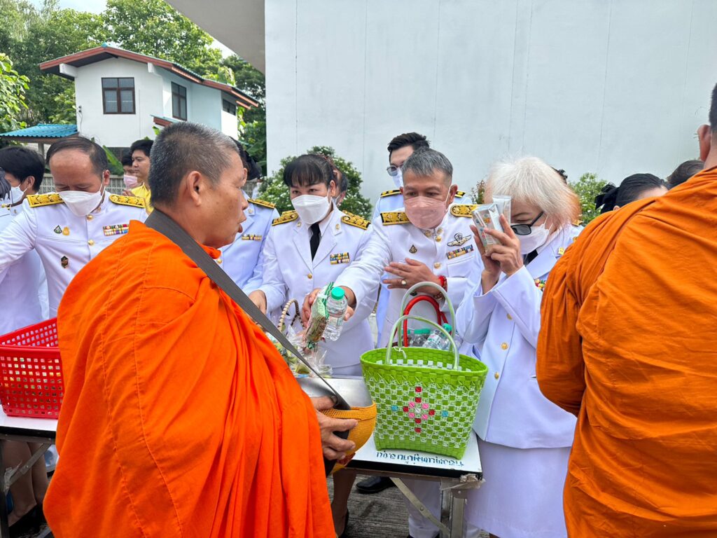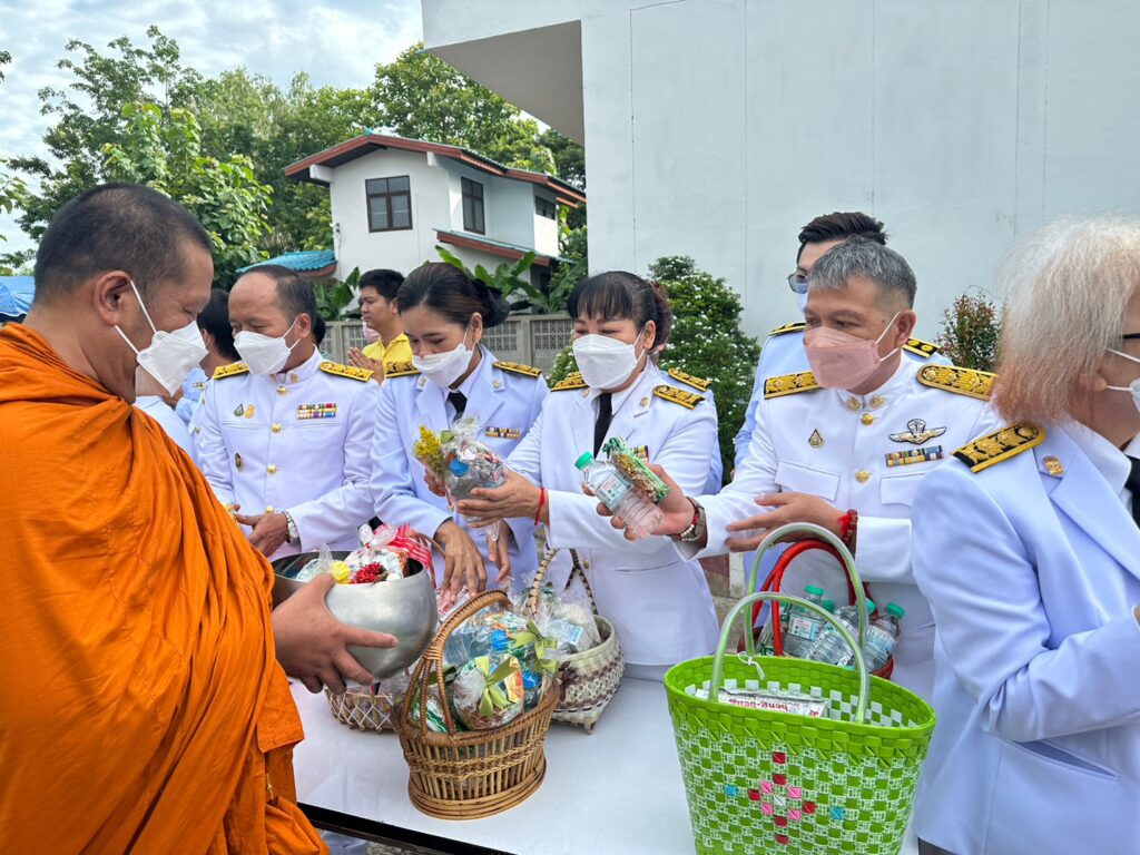 โดย ช่วงเช้า เวลา 07.00 น. เป็นพิธีทำบุญตักบาตรถวายพระราชกุศล